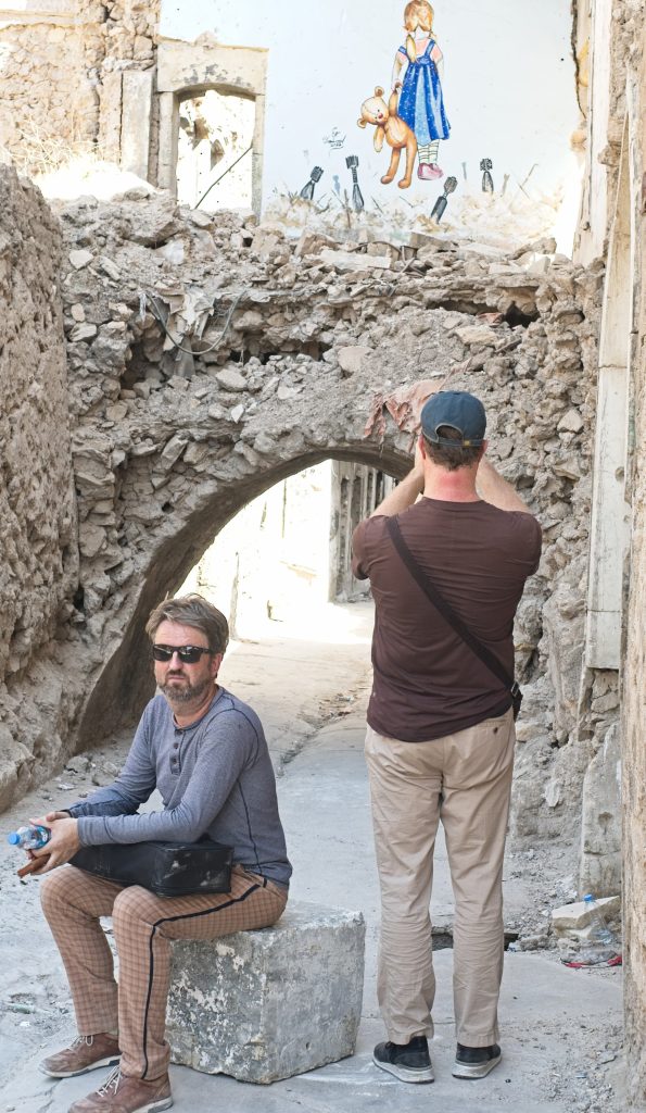 Our first-world problems, like missing bass drum pedals, stiff upright pianos, and stubborn basses, evaporated the next day as we embarked on a tour of the old town—a town that was completely destroyed by ISIS only a few years ago. As we set off on this guided tour, we were still happy and lively. However, as we ventured deeper into the city, all of us—both the Iraqi and European musicians—became more and more somber. We walked through the ruins of what was once a beautiful city, with most houses reduced to rubble. We peered into the remnants of rooms, where shoes and clothes still lay strewn about. On some doors, we saw marks in Arabic, signs of where Christians had lived. Like the Jews during the Second World War, they had been taken away or killed. Newer writings on the walls read ‘Safe,’ indicating that these houses had been checked for booby traps and grenades. In one of the houses we entered, our guide pointed out a grenade on the floor, thankfully marked. UNESCO had begun rebuilding some of the old houses, and we visited one that allowed us to climb to the rooftop. The view from there was heart-wrenching, with nothing but ruins as far as the eye could see. It was Friday (Sunday in the Islamic world), and we heard prayers emanating from loudspeakers all around town. Most of us broke into tears, and a profound silence surrounded us. Being so close to destruction, to the real evil of mankind, was a moment of both fear and hope. Fear, or rather deep sadness, that humans were capable of such gruesome actions, not only here but still in many places around the world; hope, because there are always new generations willing to rebuild on these ruins and dream of a better world.