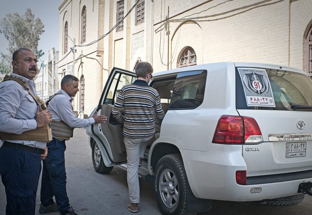 During the first few days, we shuttled back and forth between Erbil and Mosul. Erbil falls within an orange zone, which comes with some travel restrictions, but it is considered safer than Mosul, which is in the red zone. Our driver, an intriguing security expert, enjoyed entertaining us with stories about his connections throughout society. He even showed us his office in Mosul, complete with fortified doors to every room and some imposing German Shepherds. He was an intense driver, overtaking vehicles with his heavily armored V8 SUV from every conceivable angle and shouting at anyone in his way.